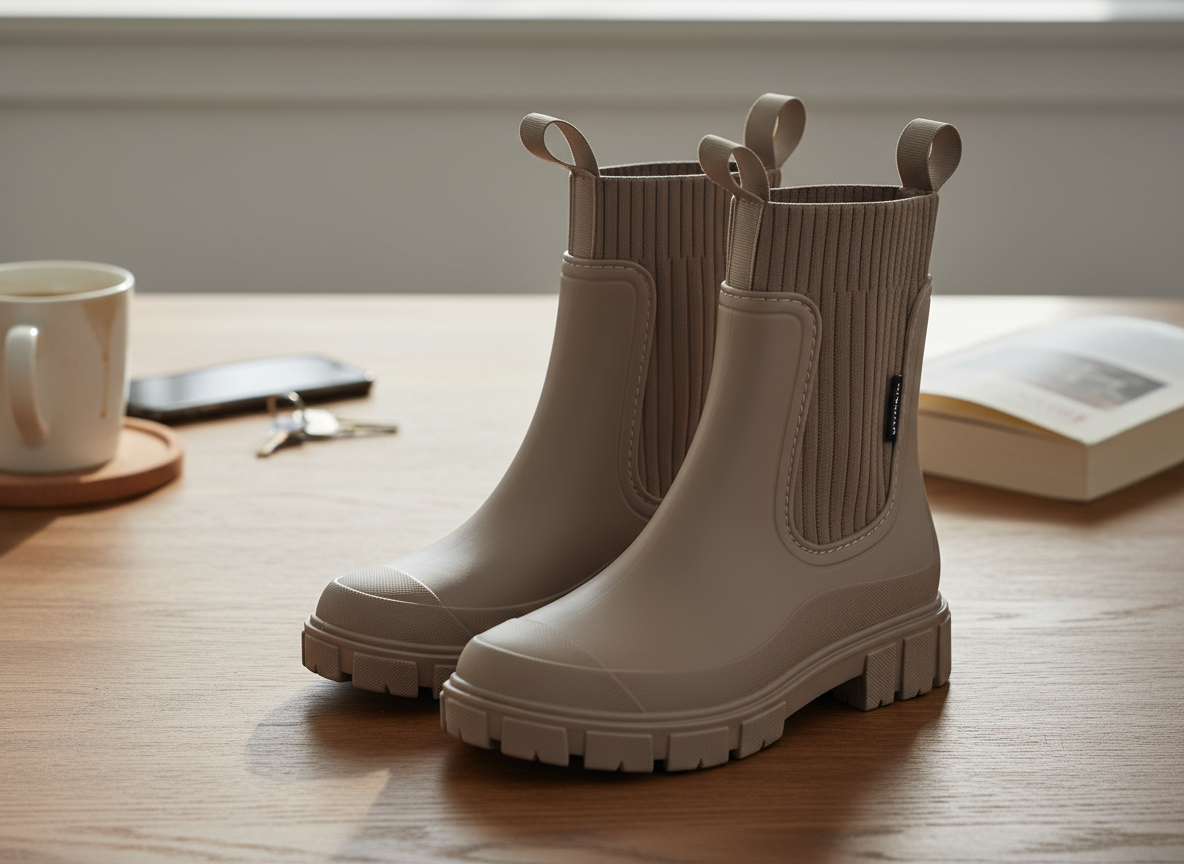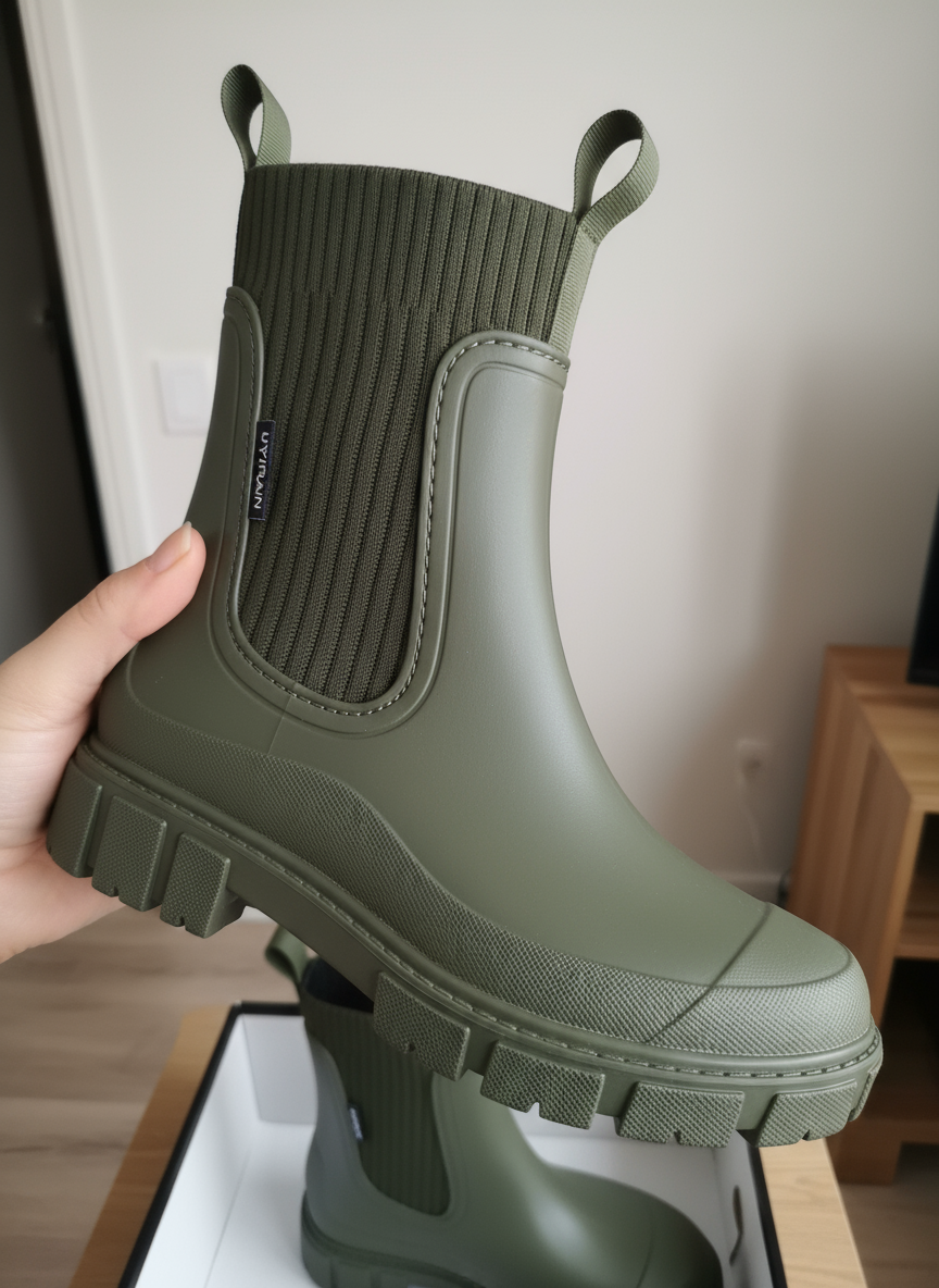 Les bottes de pluie mi-mollet Svelora redéfinissent le chic fonctionnel. Fabriquées à partir d’un PVC imperméable de qualité supérieure, elles combinent design moderne, confort durable et résistance à toute épreuve — parce que rester élégante ne devrait jamais dépendre de la météo.